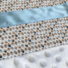 Couverture pour bébé 70x100cm faite main, éco-responsable, car composée exclusivement de tissus BIO. Devant minkee velours relief à pois, dos en fourrure extra douce.