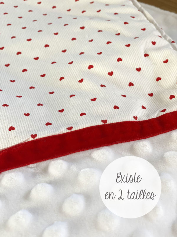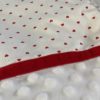 Couverture pour bébé 70x100cm faite main, éco-responsable, car composée exclusivement de tissus BIO. Devant minkee velours relief à pois, dos en fourrure extra douce.