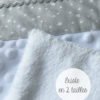 Couverture pour bébé 70x100cm faite main, éco-responsable, car composée exclusivement de tissus BIO. Devant minkee velours relief à pois, dos en fourrure extra douce.