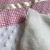 Couverture pour bébé 70x100cm faite main, éco-responsable, car composée exclusivement de tissus BIO. Devant minkee velours relief à pois, dos en fourrure extra douce.