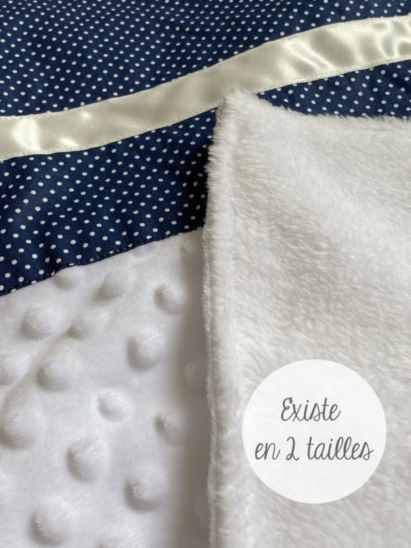 Couverture pour bébé 70x100cm faite main, éco-responsable, car composée exclusivement de tissus BIO. Devant minkee velours relief à pois, dos en fourrure extra douce.